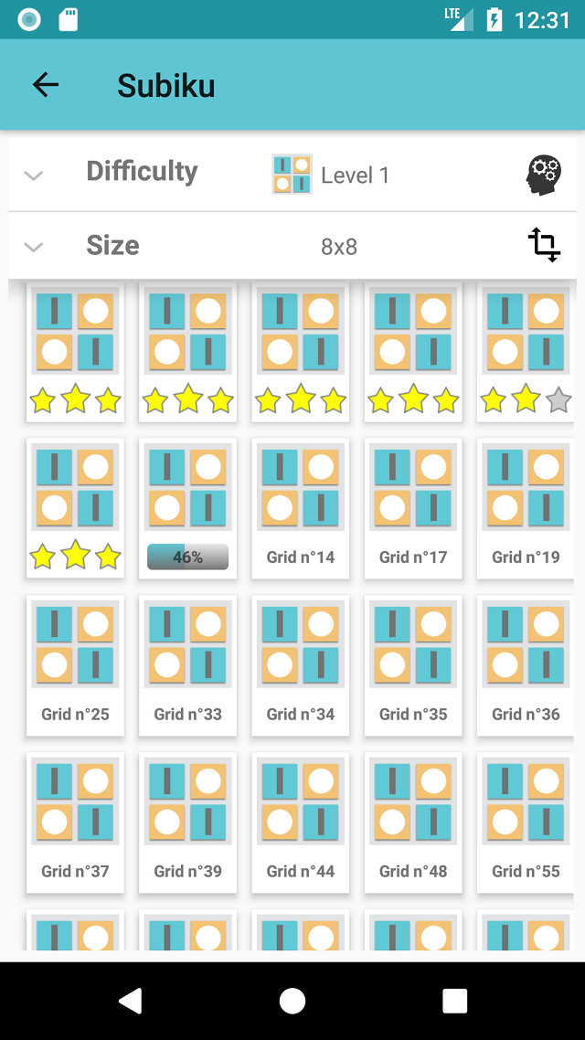 From the easiest 4x4 (too easy ?) to hardest 14x14 Takuzu puzzle, you can choose your way to play : causual or hard brain teaser